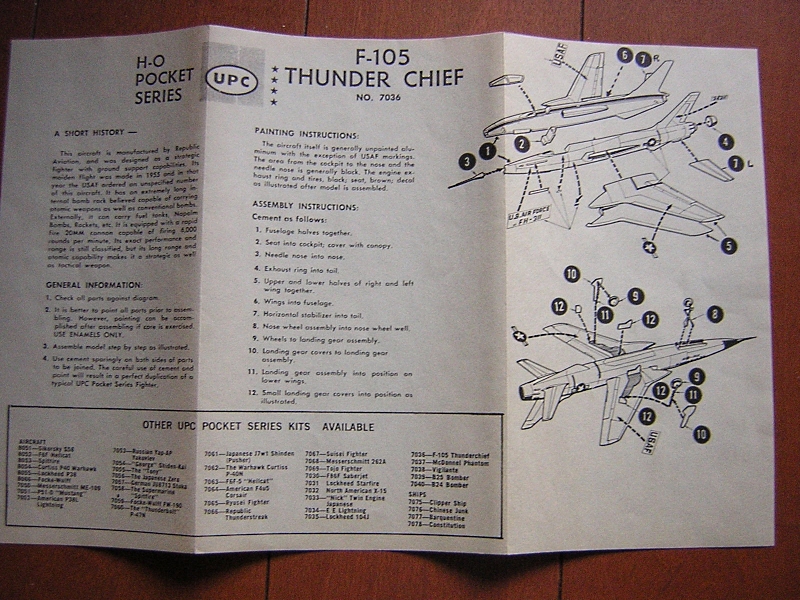 古いキットですので垂直尾翼の形やエリアルールが表現されていない胴体など色々と文句をつけたくもなるでしょうが、52年前の当時流通していた日本製のキット(しかも100円以下)のなかでは十分合格点が与えられてもよろしいのではないでしょうか。いつかベトナム迷彩塗装のタミヤのD後期型のキットと並べてみたいなと思っています。それではまた。