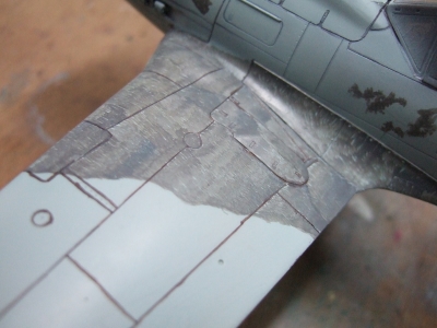 しょーがないんで簡易の筋彫り板を作って燃料投入ハッチを彫ります。ほんとにもう、まったく!