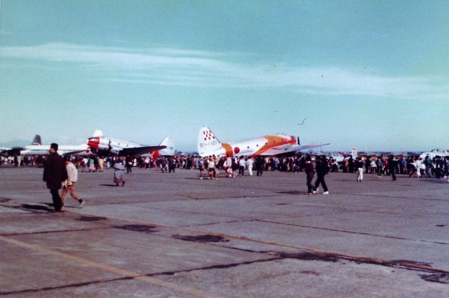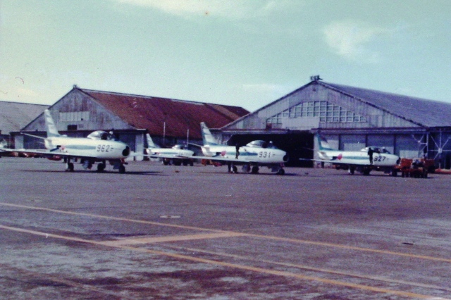 話を戻すと、T-33にしても、T-1にしても、普通の飛行機をもっと撮っておけばよかったように思うが、当時の子供の写真事情ではとてもムリだった。それに、まさかRF-86Fがジョンソン基地に集中配備されている珍しい機種だとは全然知らなかった。毎年並んでいる、普通の飛行機だったから。日本全国、どこにでもある自衛隊機だと思っていたのだ。 |