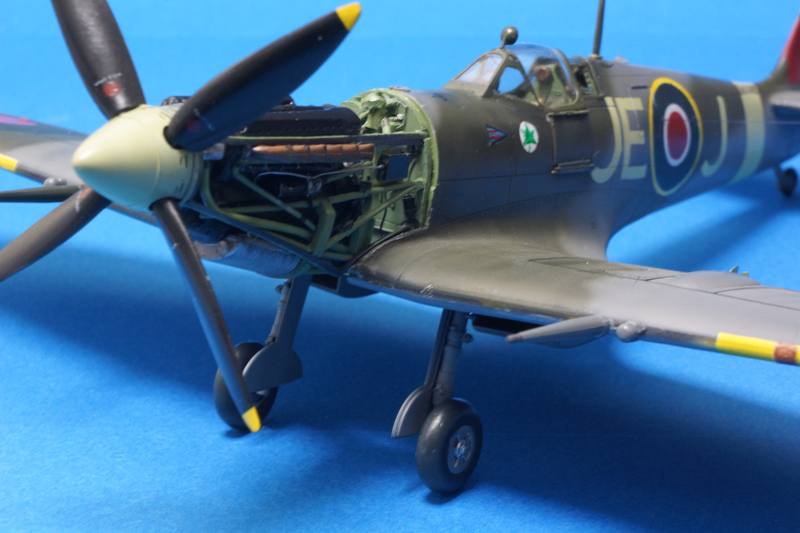 ICMのスピットファイアはエンジンが内蔵できるのですが、そのままではカバーが干渉して閉められません。