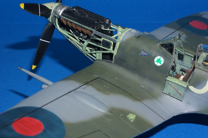 タミヤ1/32キットを参考に、エンジン、コックピット等に手を入れました。シートベルトは紙製です。