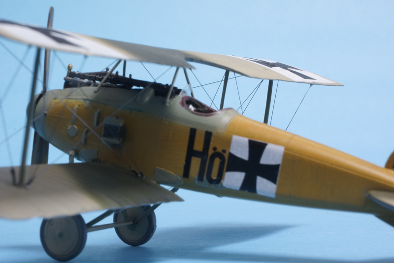 張り線は着色したテグスを穴貫通法式で張っています。ドイツ機としては地味めなjasta.2所属機をキット付属のデカールを使って仕上げました。