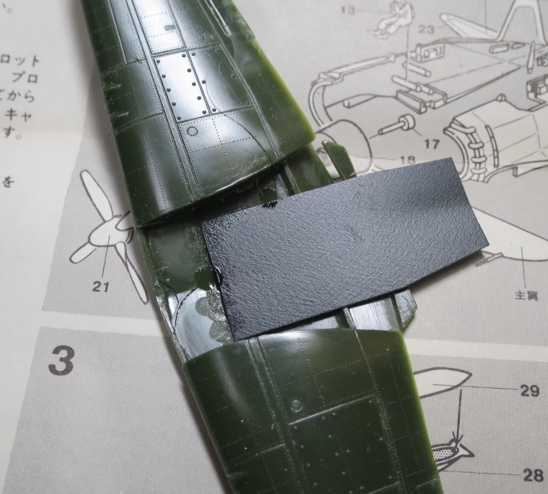 上面フィレットと下面翼後部の隙間はパテで埋め整形します。