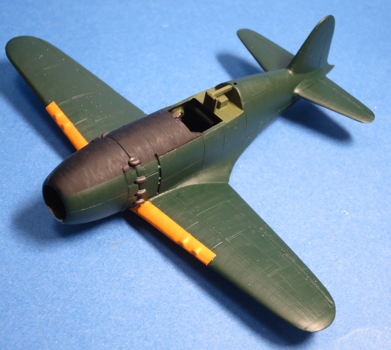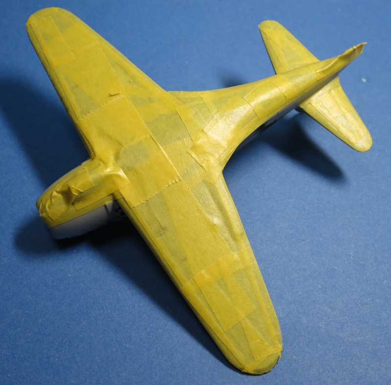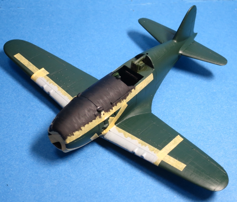 雷電の塗装の特徴は上下の境がくっきりと塗り分けられているのが特徴なので、テープでマスキングして 塗り分けました。