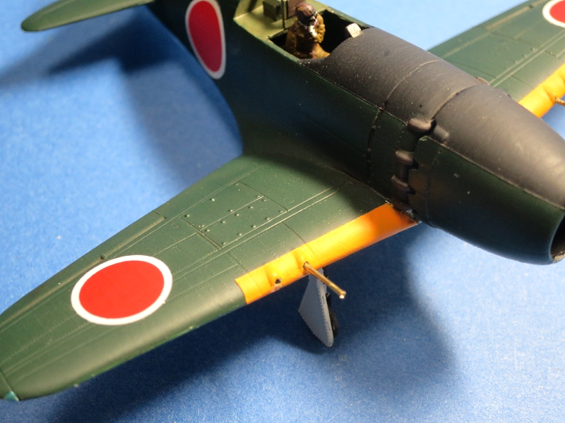 主翼機銃はしんちゅうパイプで自作、実機は先端銃口が開いていますので、クギをパイプにさしこんでグリグリとまわし、強引に先端銃口を開きました。