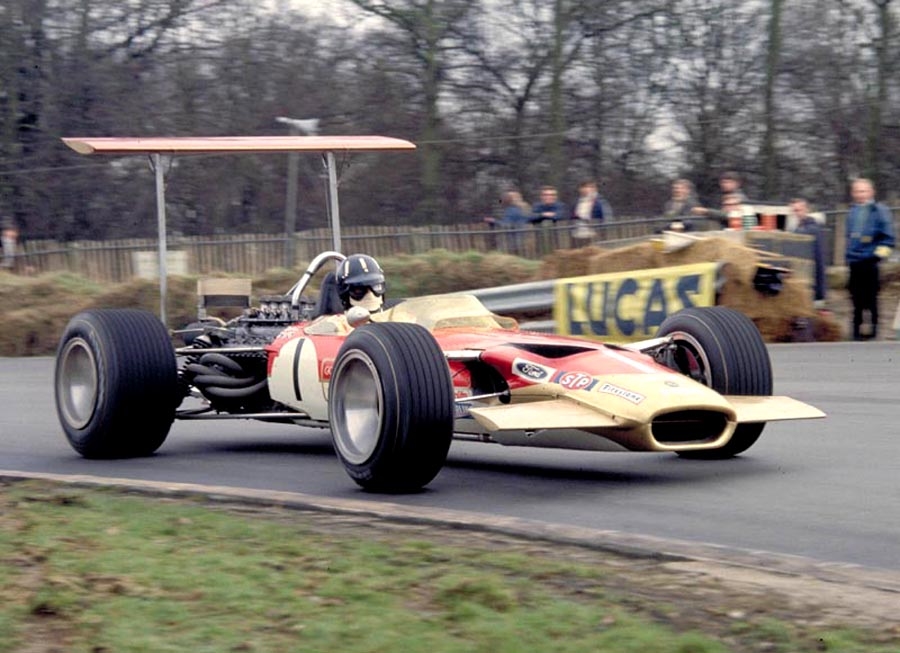 1969年はロータス63を投入する計画だったが失敗作だったため、49Bを継続使用した。技術競争の末に出現したリヤの大型ウイングを、各F1チームとも使うようになったのだが、細い支柱の上に大型ウイングが装着される構造は誰の目にも安全性に危惧があり、そのうちに事故が起きるのではと懸念されていた。