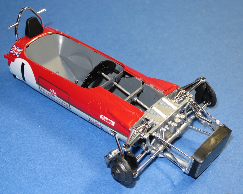 以後、ロータスはロータイプのリヤウイングに変更する。このロータイプのリヤウイングはエブロの49Bキットには部品とデカールが入っており、作り分けることが可能だ。