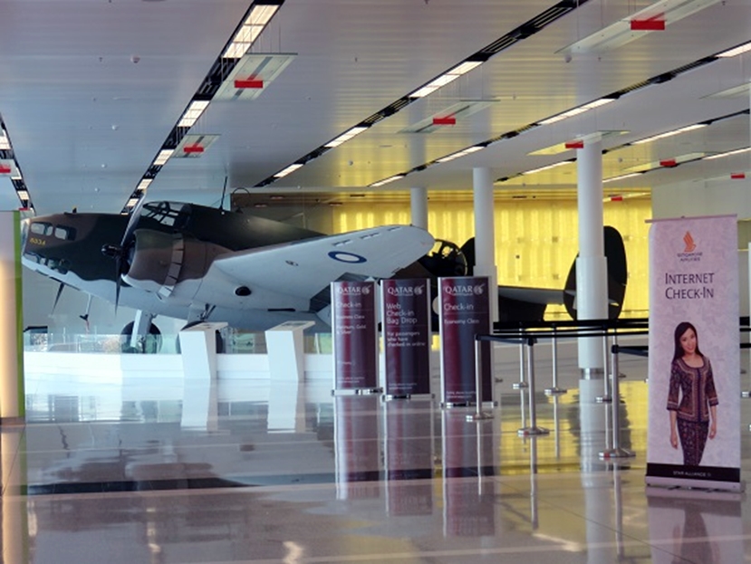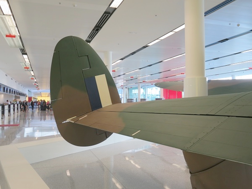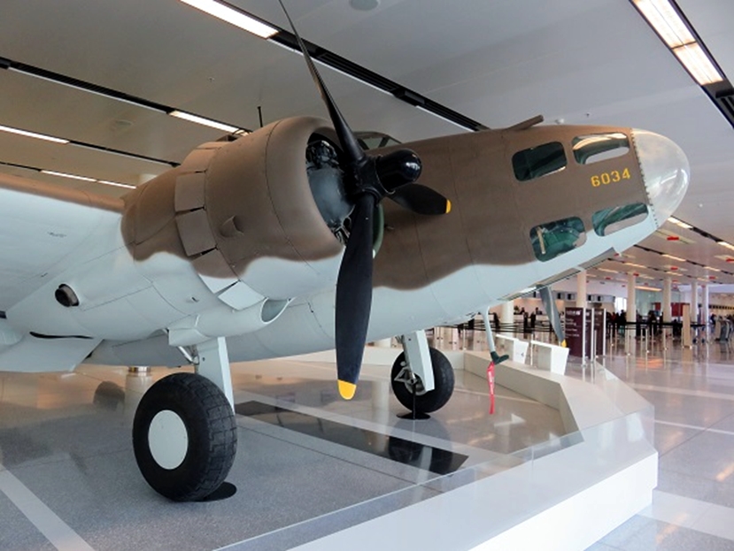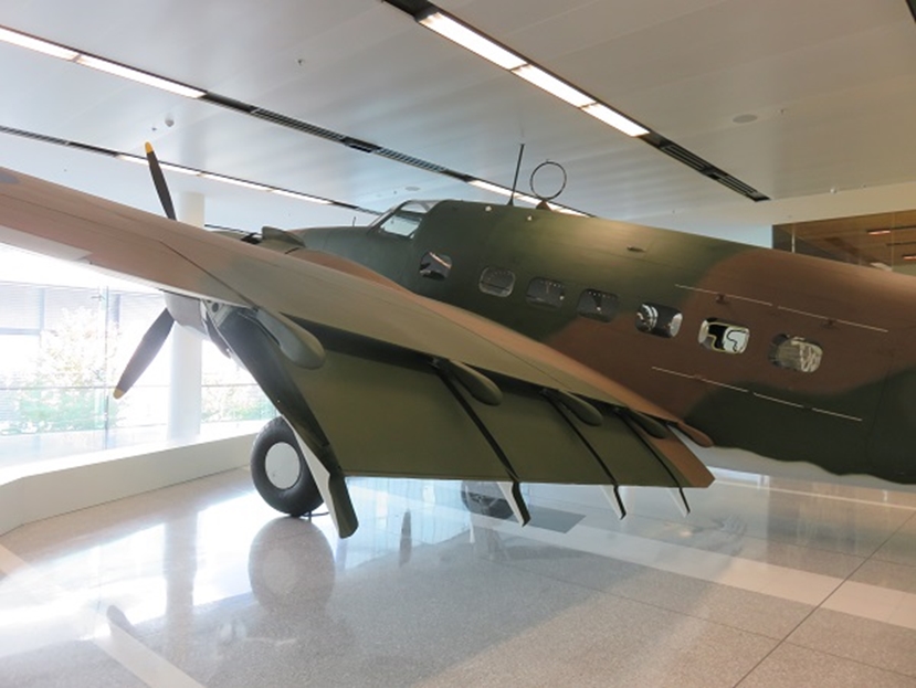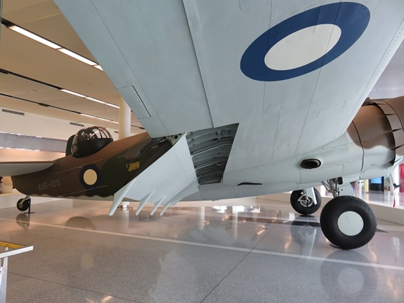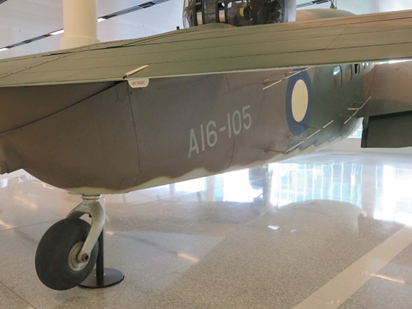 オーストラリア戦争記念館(AWM)コレクションのロッキード・ハドソンは館内にはなく、キャンベラ空港ビル内で展示されています。昨今の博物館の照明は、展示品の劣化を防ぐためにか、暗い設定にされて写真撮影に難渋していますが、このハドソンはチェックインカウンターのフロアーに展示なので、照明は明るく、かつ見学者はいないので、安心して撮影出来ました。
