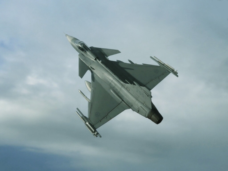 3機目は、同じくスウェーデン空軍の現主力戦闘攻撃機、ザーブJAS39Cグリペン。