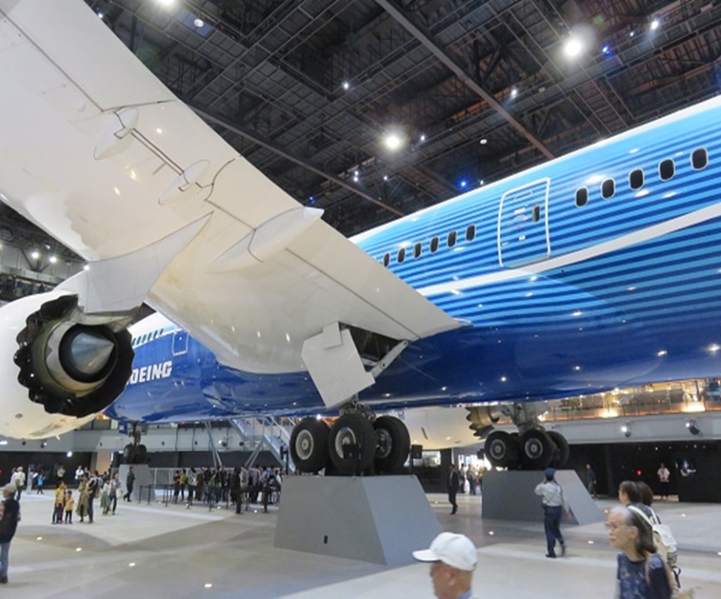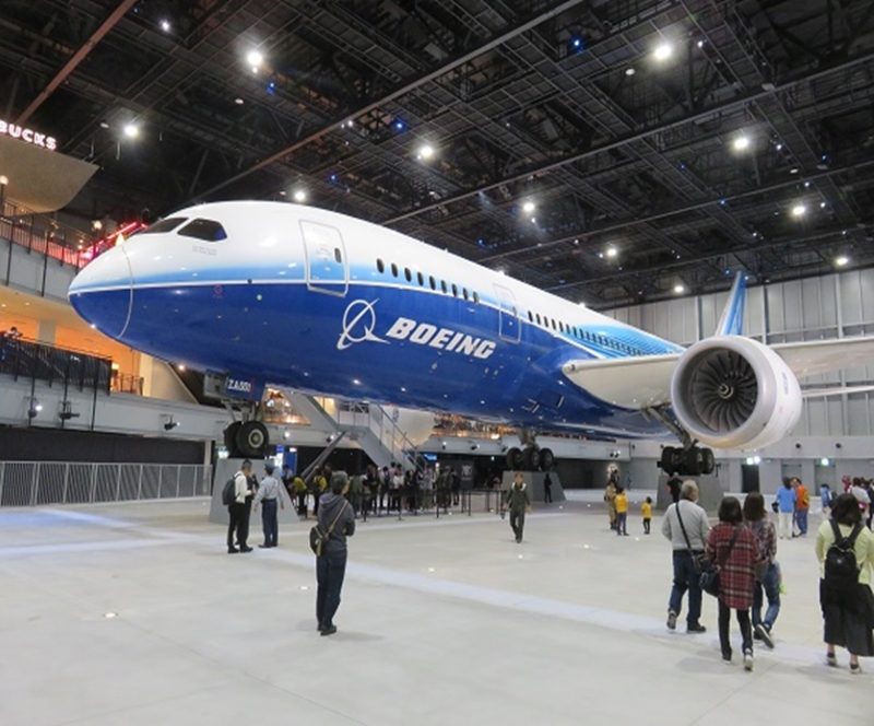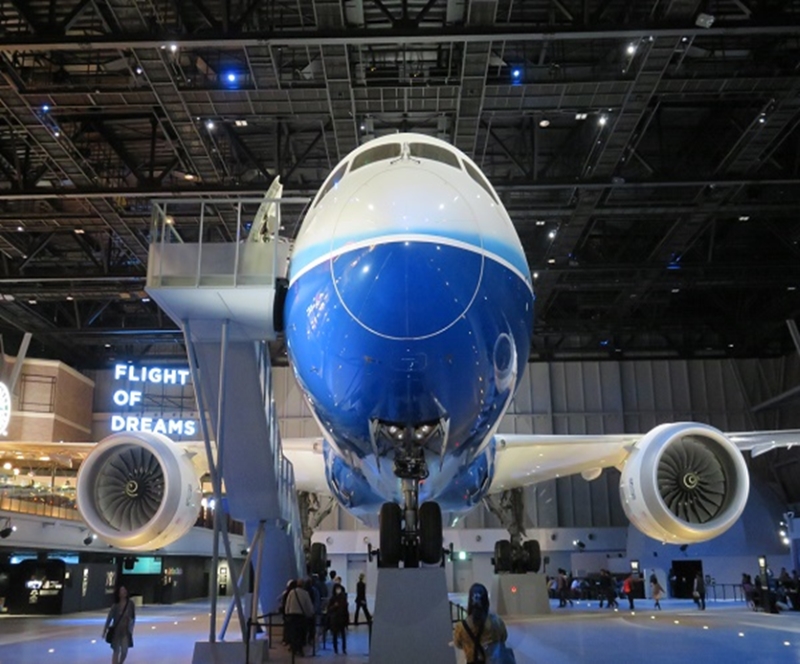 ボーイング787ドリームライナーは2009年12月15日初飛行の双発の中型旅客機で、航続力は大型ジェット旅客機に匹敵し、巡航速度はマッハ0.85と高速で、燃費も優れた高効率とされています。日本企業の生産参加率は35%と高く、中でも東レ製造の炭素繊維を使用した複合材料で、機体軽量化が図られたことは有名ですね。又主翼などの主要部品が岐阜・名古屋地区で生産なので、初号機のセントレア寄贈となりました。
