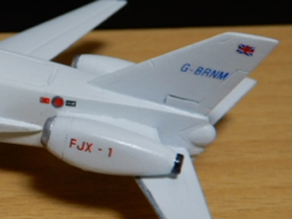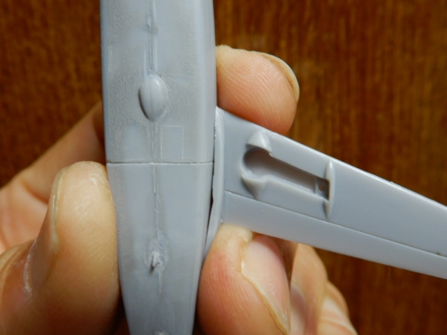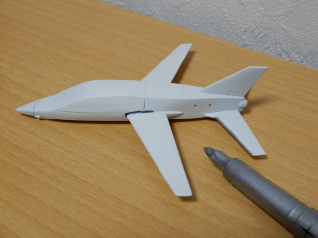 胴体後部に尾翼3枚とエンジンポッド2個がつくので完全にテールヘビーじゃあ,と思っていたら,そうでもありませんでした。思い込みで計器盤の裏におもりを仕込もうと四苦八苦していたのですが,試しに主要部品を取り付けた後,主脚の取り付け穴左右にボールペンの先を差し込んでバランスを見てみると,何のことはない,完成後に尻餅をつかないことが判明しました。テールヘビーに見えるけれど,主脚の位置も後ろに寄っているのでバランスが取れているのでしょう。 |