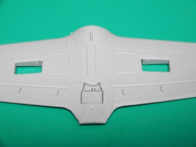隙間は,胴体下部と主翼下部の接合部にもできます。プラ板やゼリー状瞬間接着剤とパテを併用して隙間を埋める事により,経時によるひけを抑えました。