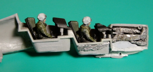 塗装すると,座席をコクピットに取り付けるとき,はめ込みがきつくなります。干渉する部分を少し削って調整するとよいでしょう。相変わらず,パイロットのフィギュアは,いい感じです。パイロットが入ると,コクピット部の塗装のアラが覆い隠せるので助かります。それに,別売りのシートベルトを買わなくてもいいしね。