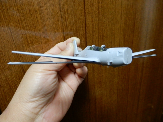 3 主翼のつけ根近くに,寸法違いから来る隙間ができるので,あらかた接着できたら固まるのを待って隙間を埋めます。