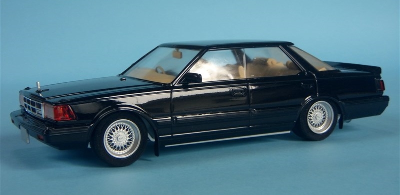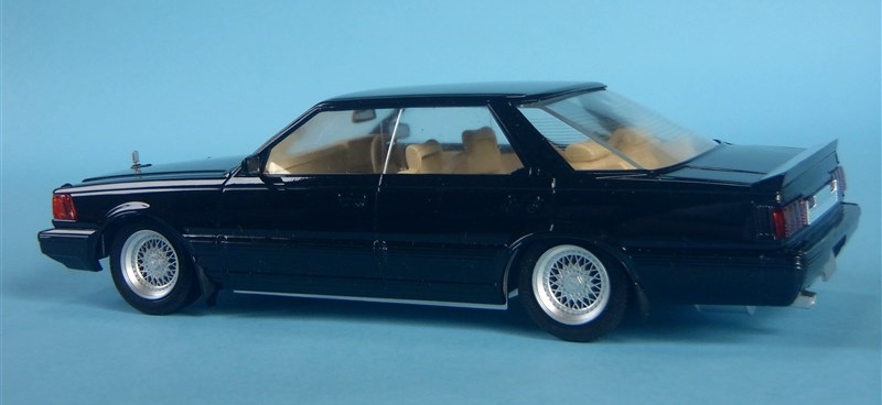 完成したY30セドリックです(図7~図10)。BBSホイールだとどうもタイヤハウスがスカスカな感じがしたので一段車高を下げてバランスをとりました。シャコタンはシャコタンなりに似合うのですが、ヤン車風になってしまったようです。品行方正に作りたい場合には現行キットの純正タイヤが良いと思います。