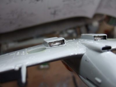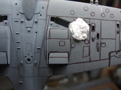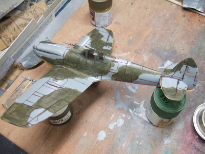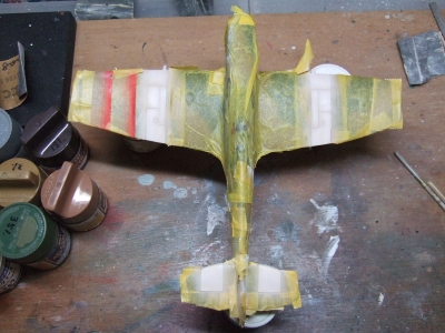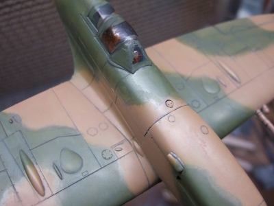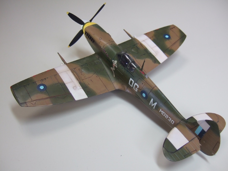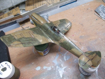 (写真19) デカール貼って細部を塗って貼っつけてトップコートを吹いたら出来上がり。ちなみに機体のラジオコールナンバーと機番、そしてノーズアートは例のごとくデタラメであります。いつもの事であります。軽く流しちゃって下さいって所です。みなさまはもうとうに分かっていらっしゃるとは思うけど念のためw