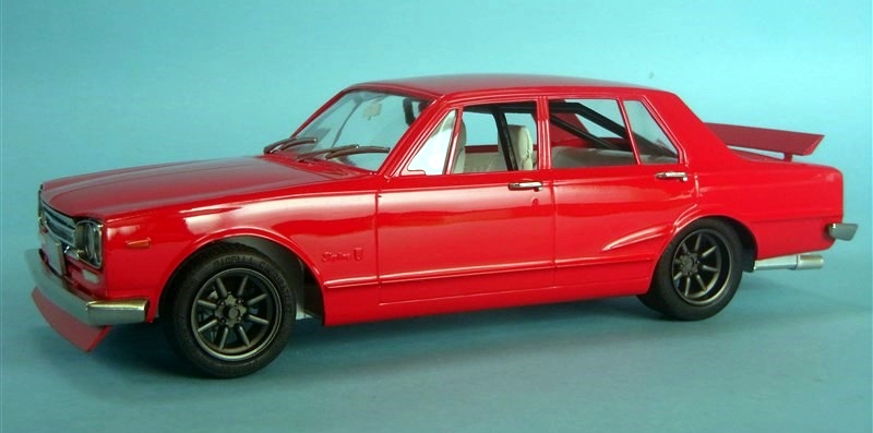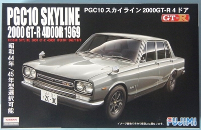 こんにちは。KOZY商店です。フジミのハコスカGT-Rです。4ドアのPGC10型です。ハコスカGT-Rといいますと一般的には2ドアのKPGC10がイメージリーダーで、4ドアはやや影の薄い印象です。ただオリジナルとしてはこちらの方が先のようで、KPGC10はむしろ派生版といったところかもしれません。