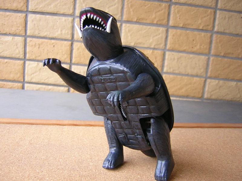 今回の特集に合わせて温故知新シリーズはニットーのゼンマイで動く怪獣シリーズ第1作の大怪獣ガメラをサクッと作ってみました。果たしてゼンマイは生きているのでしょうかと心配しながらの製作となりました。ニットーはガメラ、バルゴン、ギャオスと大映の映画通りに作った後はオリジナルの怪獣を出していたような記憶があります。