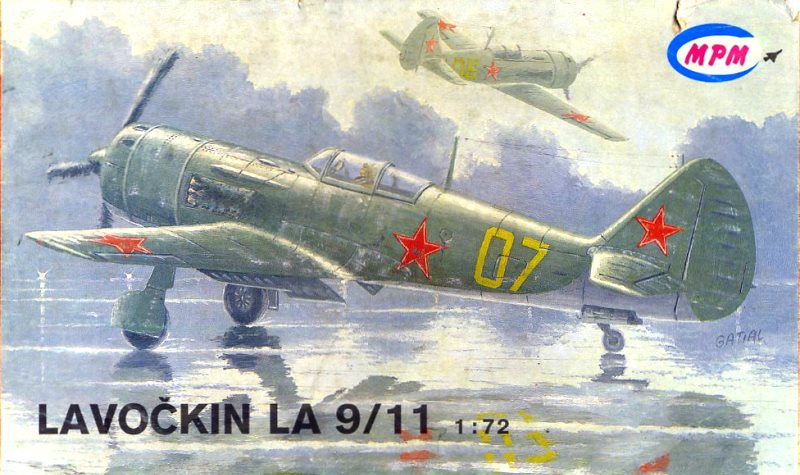 BOXア-トは滑走路をタキシング中のLa-11と奥にもう1機、離陸直後とおぼしき機体が描かれています。滑走路が濡れていて背景のグレ-部分も雨雲を連想させるから、雨の日の情景を描いたのでしょう。だとすれば全体にコントラストが低く霞んだ様に見えるのも頷けます。実際のパッケ-ジは絵が印刷された紙が白無地の箱に糊貼りされているのですが、その印刷の質が悪くて余計霞んで見えます。機会があったらぜひこれの原画を見てみたいものです。