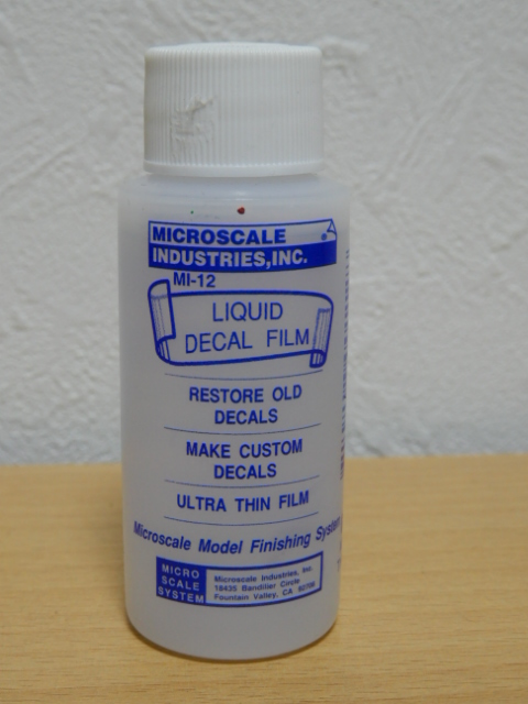 古いデカールを水に浸すとバラバラになるのを防ぐ(防いでくれるかもしれない)魔法のアイテム。これの導入により,古いけれど黄ばんでいないデカールが無駄にならずに済みます。