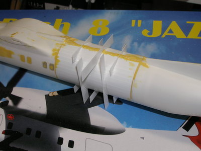 垂直尾翼が分厚いようなので、加工してそこそこ薄くしましたが、後から確認すると、なにか余計なことをしたみたいです・・・・・これでけっこうな時間を使ってしまった。。。。