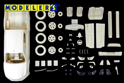 ④ レジン・エッチングパーツ・クリアフィルム・デカール他【組み立てやすさと適度なパーツ点数で再現された1/24スケールマルチマテリアルモデルキットです。レジンパーツ約50点、エッチングパーツ、窓枠印刷済クリアフィルム、ミラーシート、デカール