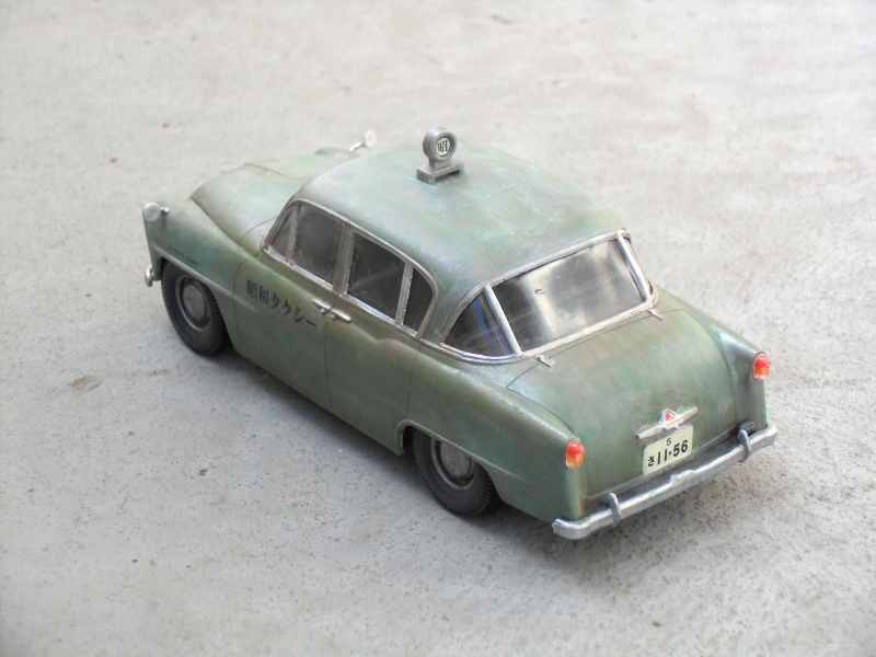 実のところ生涯で10回程度タクシーに乗ってきたが、この昭和30年代の型式のものは記憶にはないのだ。しかし、三角窓、金属製のバンパー、うすべったいフェンダーミラーなどわたしの郷愁を誘う部分もある。