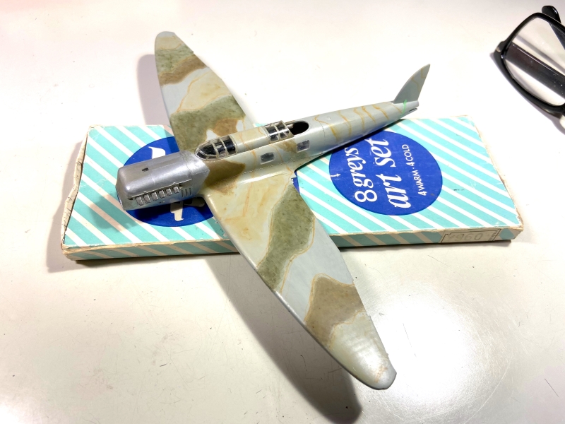 塗装に関しては調べた結果、機体毎に異なるパターンの様で、初見で一番怪しいと思ってましたマッチボックスオリジナルのインストの塗装図で塗り上げます。箱絵裏の塗装図とも一部異なっており、想像も入ってます。