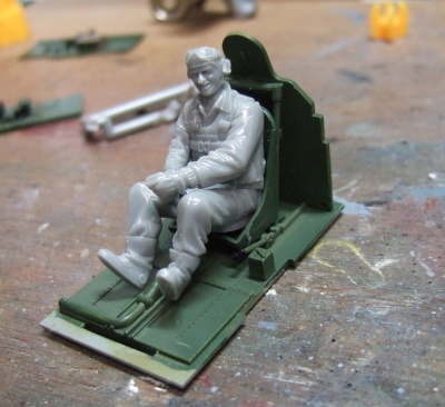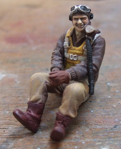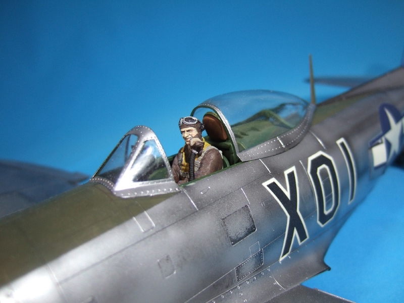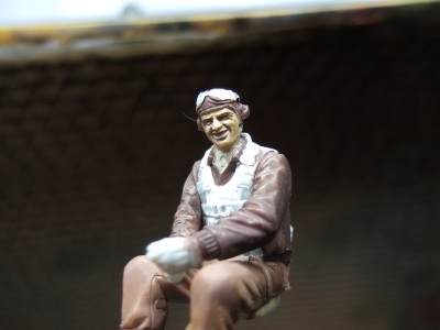 (写真22) フィギュアは割とがんばったので今回キャノピーは乗っけてるだけです。なんか無駄に朗らかなのがまさに「アメ公」って感じ。何だかホントに戦場広報写真でこんなシーンありそうだよ。