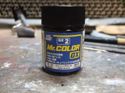 (写真14) 銀色に塗るんで当然下地はグロスの黒。となれば贔屓のウイノーブラックの登場であります。