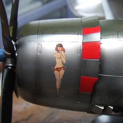 (写真23) 実はノーズアートのおねえちゃんを貼りたくてこの機体を作りました。でも言わなくったって分かるよね、男の子だもん。