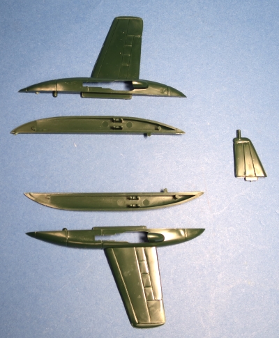 主翼、水平尾翼とも1枚構成で、主脚庫部は主脚柱を組み込んでから上下を接着するように指示されています。