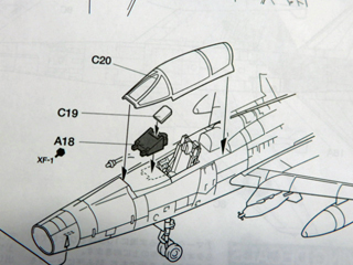 最大の難点は,キャノピーの枠が1本多いこと。これは,復座型のF-100Fと混同しているのではないかと思われます。