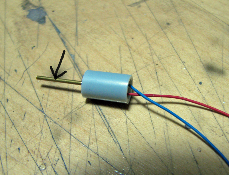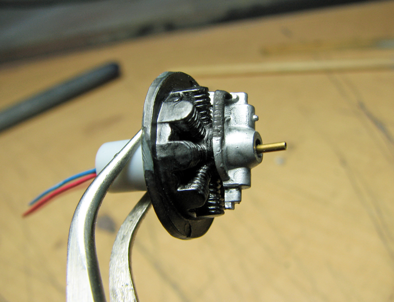 プロペラ電動はいつもの通り6mm径のマイクロモーターを使いましたが、エンジンパーツの奥行きが結構あるので、真鍮パイプでシャフトをかなり延長しています。(よく使う方法で珍しいことではありません。)