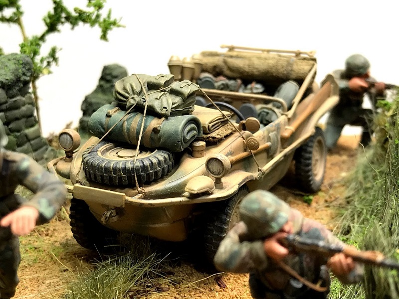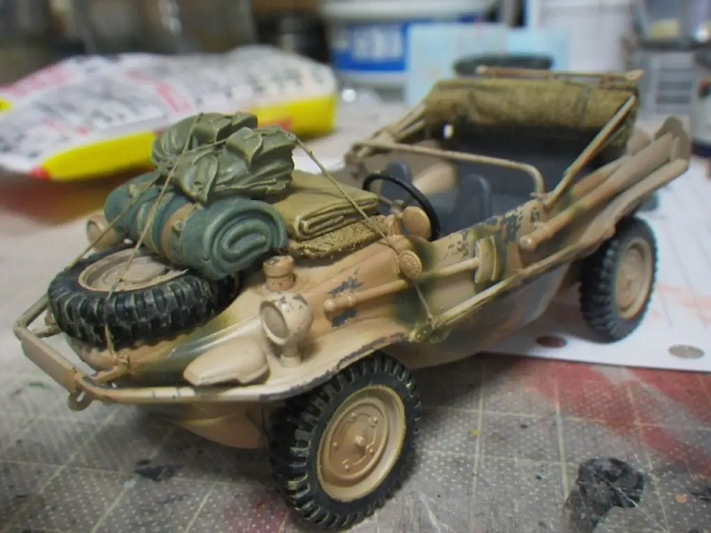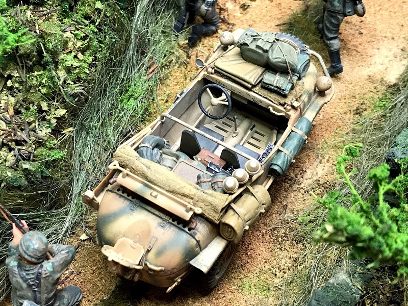 シュビムワーゲン、4輪駆動なのでキューベルワーゲンに比べ機動性が高く、河川や泥沼などが多い東部戦線前線で大人気で常に車両不足状態だったようです。