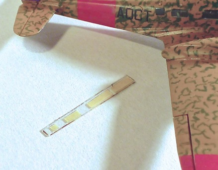 側面の窓側の透明プラパーツです。分かり易くするため窓ガラスにはマスキングテープを貼って、マジックで黒い縁取りをしてます。透明板ガラスの窓は狭く小さいのでこれでは印象が全く違って見えますね。そっくり取り替えて窓は一回り以上大きくしています。