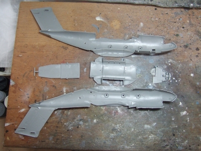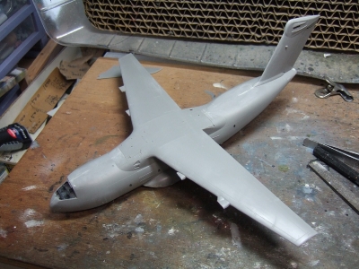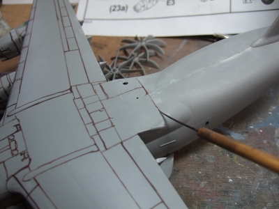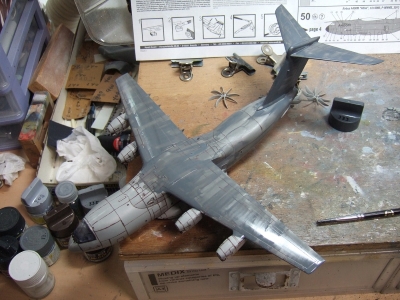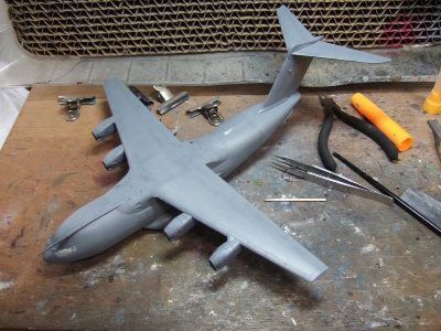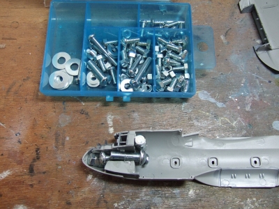 (写真3) 機体内部はコクピットしか詰め込んでないので形にするのはあっという間。このキットは足回りと内部再現にパーツと情熱が注がれているのでドンガラだけなら苦もなく形になっちゃう。逆に言えばこれはキット設計者の意図を半分ドブに捨てるかのような所業じゃね。更に飛行状態の極楽鳥仕様にでもすればリキ入れてる部品の殆どが不要という極悪非道の鬼畜モデリングとなりまする。おお、なんと贅沢な趣味でありましょうか。