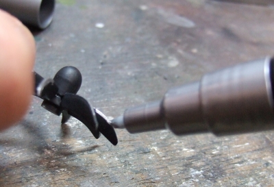 (写真4) 8翔ペラはフルフェザーと推力状態の二種類が入っている親切設計。ブレードが別パーツじゃなくて良かったよ、バラバラだったらパニックじゃ。32枚もあるペラの角度調整なんて考えたくもない。