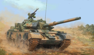 ④中華人民共和国建国後、ソビエト連邦から兵器の供与を受け、装甲部隊が近代化されると戦車の国産化が進められ、T-54戦車をノックダウン方式で生産したのが59式中戦車です。59-D式は主砲を長砲身の83A式58口径105㎜ライフル砲に換装、さらに防御力強化のため爆発反応装甲を装着した改良型です。キットは精密・正確にモデル化。全長25.7㎝、全幅9.3㎝。パーツ数620以上。履帯は連結組み立て式。エッチングパーツ付き