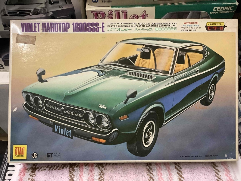 これも我が家のクルマ遍歴の1台であるが、この時代のカーモデルキットはモーターライズがマストであったことから、上げ底、ディディール適当、スケールも怪しいものばかり。その中で一番まともなP710バイオレットのキットと認識している。しかし、やはりかなり手を加えないと鑑賞に耐えるものにならない。親が生きているうちに完成させたい1台。