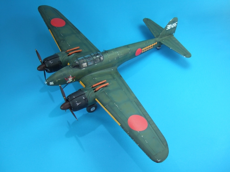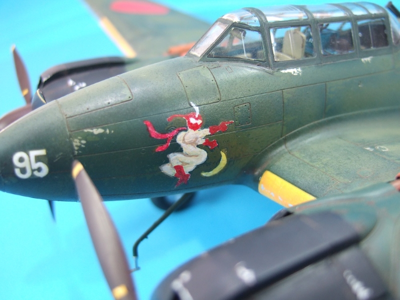 まぁいいや、プラモなら何やっても制作者の思うがままなのでこういうヒコーキも出来ちゃったりする訳ですよ。生真面目な戦史ファンやモデラーの方々には「許せねぇ」って言われちゃいそうですけれど作ったもん勝ちってことで勘弁して下さい。大切なのは楽しんで作るということだとそう固く信じているのであります。