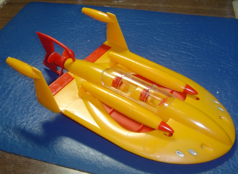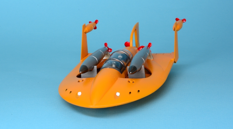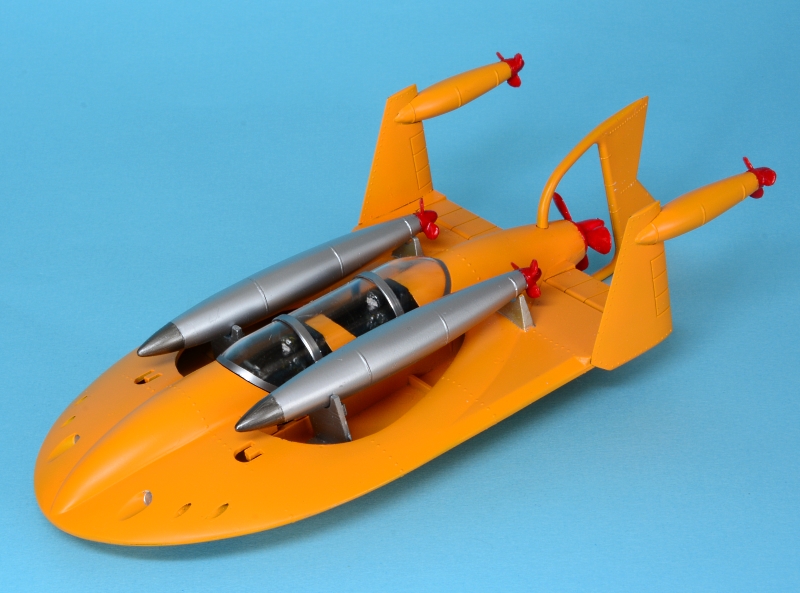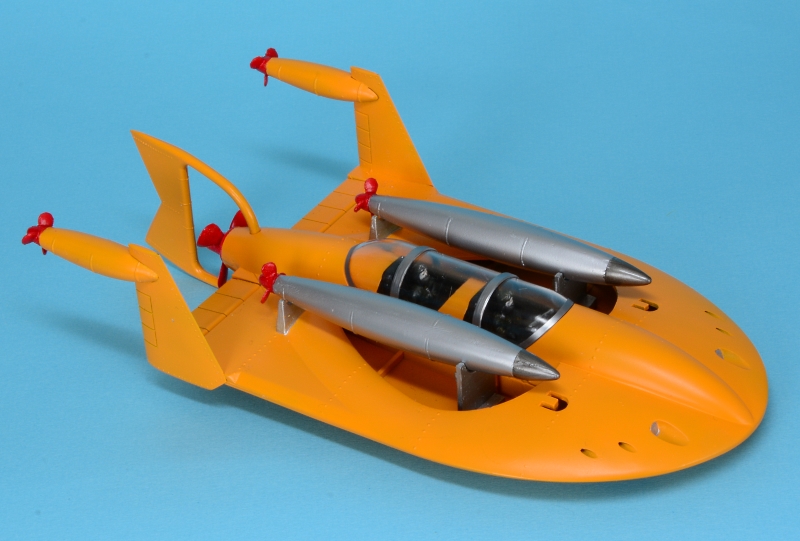 この海底バギーは1965年の映画「007サンダーボール作戦」に出演した潜水艇をイマイなりのアレンジを加えてモデル化したものと思われます。イマイの模型では 少年への教育上の配慮からか映画の核弾頭を魚雷に変え、左右ウイング先端に補助プロペラを追加装備させています。 発売当時は、1954年のビキニ環礁水爆実験による第5福竜丸の被ばくから年月も経っておらず、反核運動が盛んだったこともあり、賢明な判断だったことでしょう。(今でも日本では核弾頭をプラモデルに装備しようとするだけで炎上するかもしれませんね。)