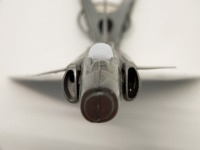 ・カナードの下反角は,一旦放置して,ジエットインテーク(部品6と7)を接着します。ここにも隙間ができますが,接着面を平面ヤスリで整形して調整すると段差や隙間の発生を抑えることができます。次の作業に備えてジエットインテークとカナードは,がっちり接着しておきます。ここで念のために1日放置しておきます。