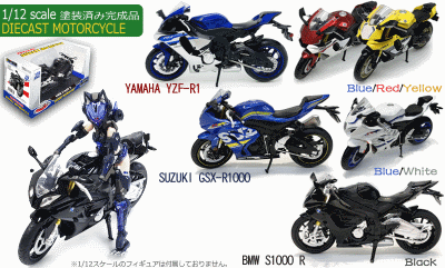 ④塗装済み完成品 ダイキャストモーターサイクルが1/12スケールで登場!今回は国内のオートバイ業界でも名高いヤマハやスズキ、ドイツの有名メーカーBMWよりライダーがお勧めする3種をチョイス。スーパースポーツ界にふたたびブームを巻き起こしたヤマハ