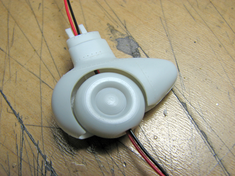 電飾と電動の電源は展示台(お皿が入っていた桐箱)の中に仕込んであり、固定式の主脚の中を通って機内のLEDとモーターに繋がっています。