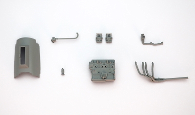 キットに付属しているエッチングパーツと挽き物のエアファンネル、エキゾーストテイルパイプ