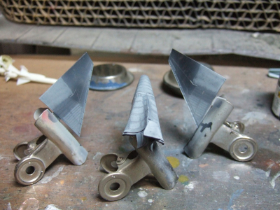 (写真7) 魅惑の尻尾塗り。今回もメタル系のカラーは使わず金属表現にチャレンジ。黒塗った後にミディアムグレーで明るい部分を塗っとく。