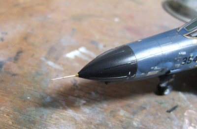 (写真18)ついでのファイン製ピトー管。ミサイルといいシートベルトといい今回はアフターパーツてんこ盛り(しかも全部ファインモールド製)の作品となってまいました。