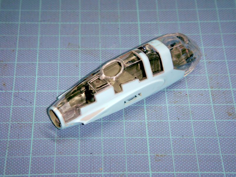 クリアパーツを接着した上でキャビンポッド全体を整形