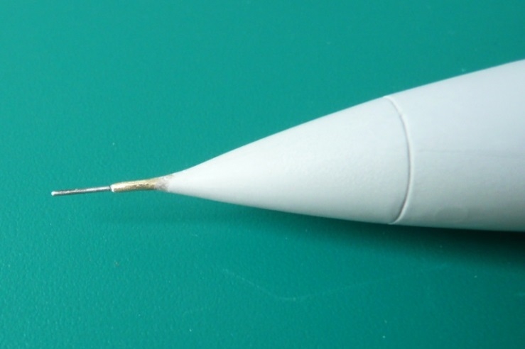 またこの作業中にキットを落として、ピトー管を折ってしまったので金属パイプと金属棒で作り直し、機首部を整えました。(写真3)